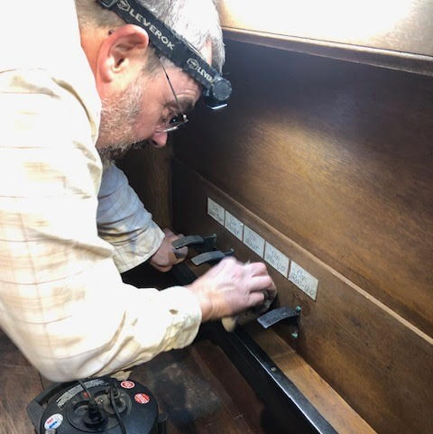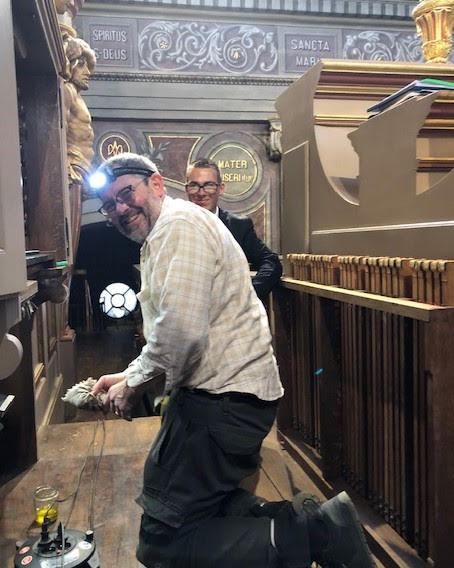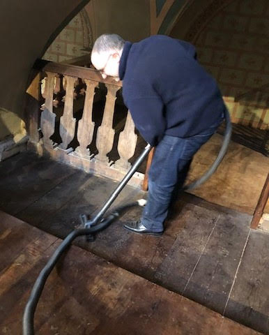 De même en tribune, Franz Lefèvre, facteur d'orgue, Jean Pierre, Brice, Léo et Matthieu ont assuré un nettoyage efficace de la tribune et de l'orgue: merci à eux!!!