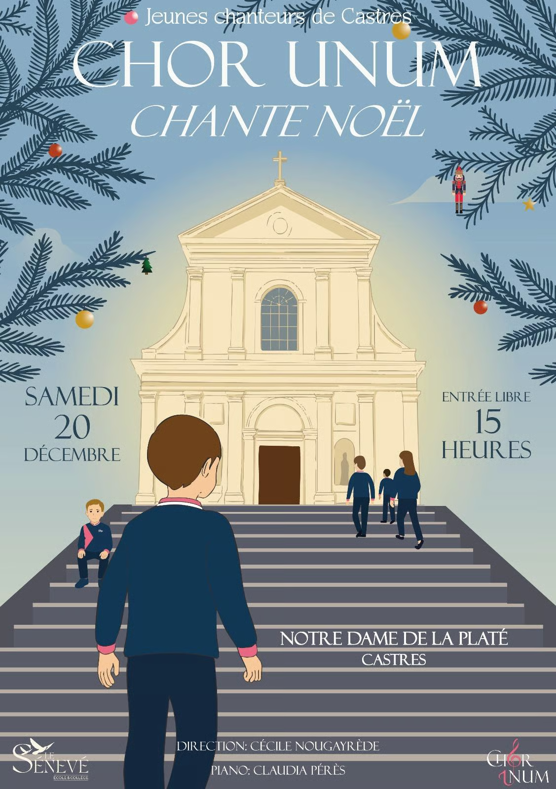 Samedi 20 décembre à 15H à Notre Dame de la Platé, le Chœur d'enfants "CHOR UNUM" sous la direction de Cécile NOUGAYREDE accompagnés au piano par Claudia PERES